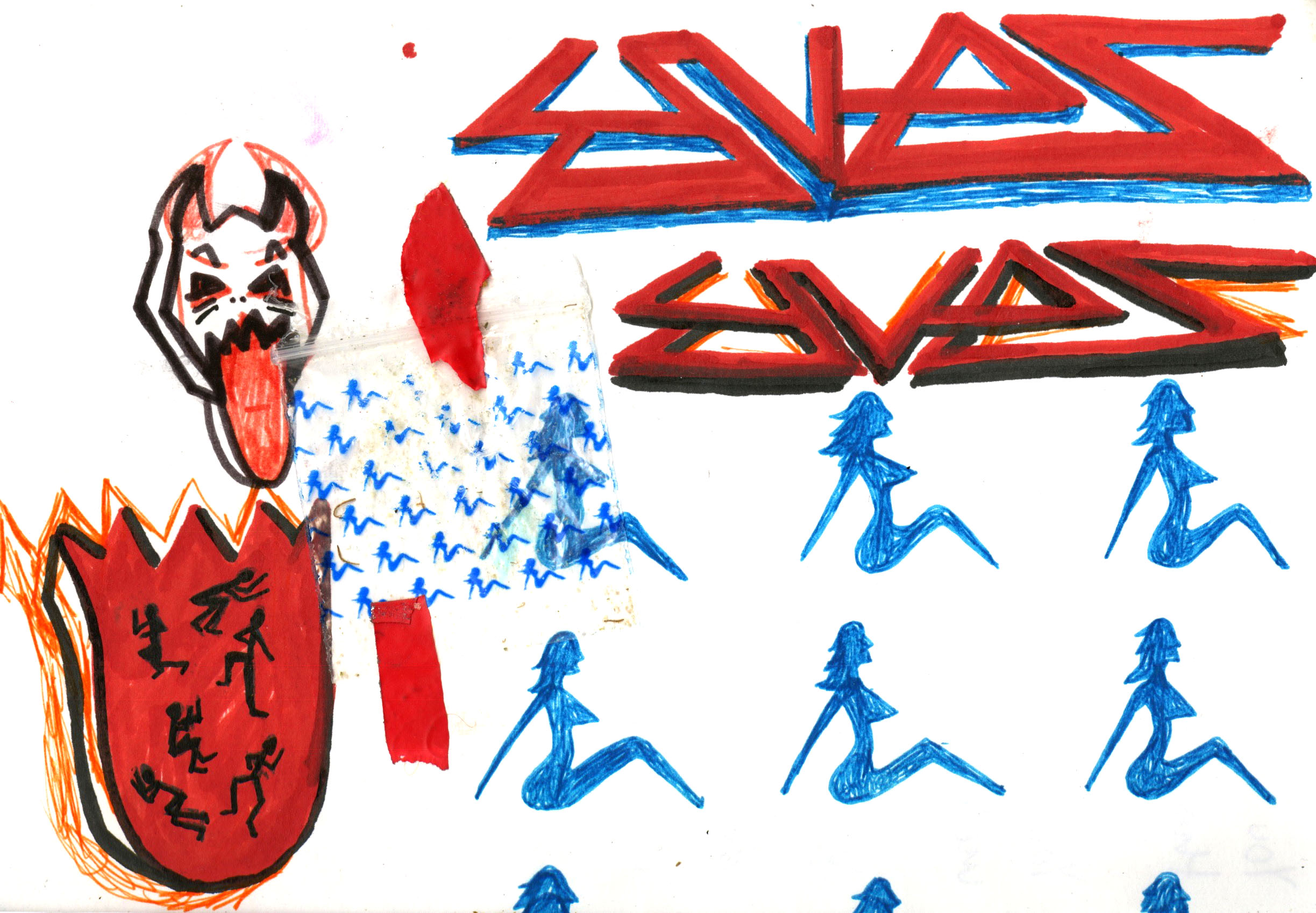 To give the poster a more dangerous and agressive attitude, I decided that the pill would be in the form of a devil. I also found a drug bag with a blue printed pattern of women which I found really interesting and wanted to recreate
